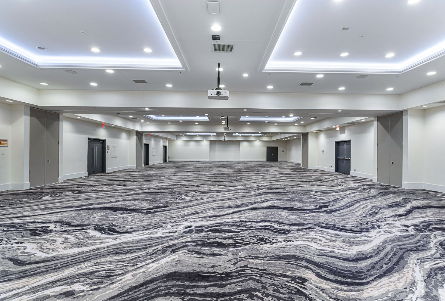 Harborside Ballroom, measuring a total of 6,100 square feet, is capable of accommodating up to 600 people theatre style, 400 in banquet rounds, and 300 classroom style.
