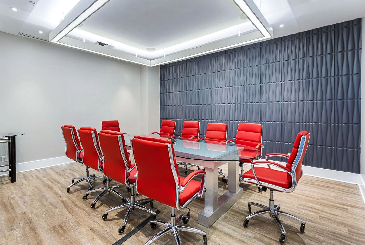 The Vault Boardroom is 304 square feet and can accommodate 10 attendees.